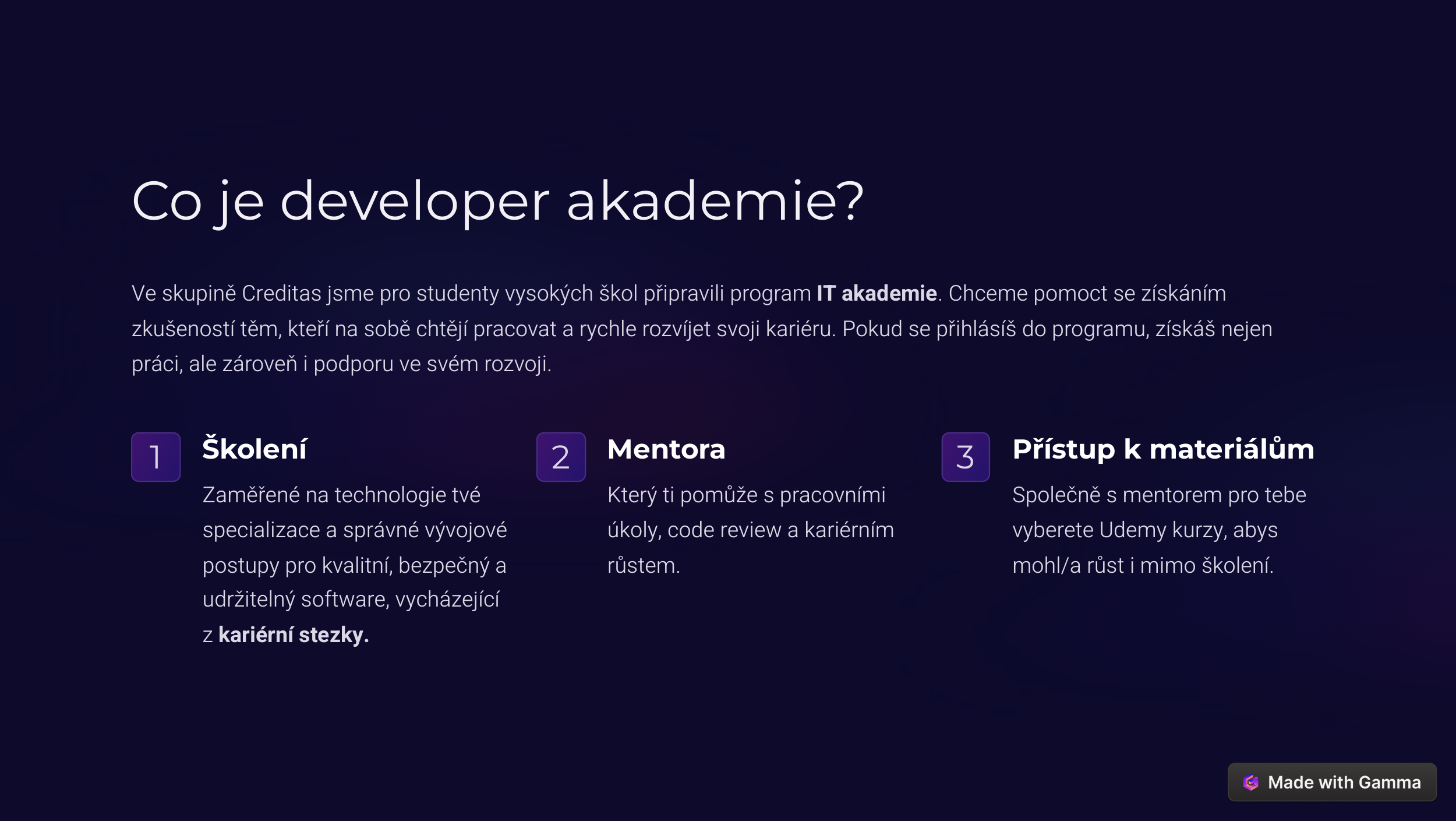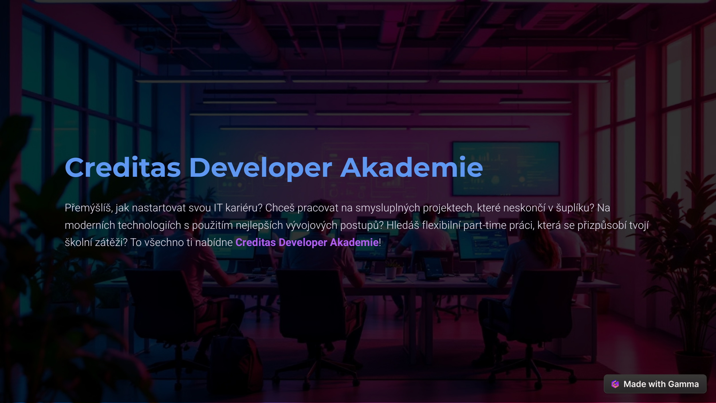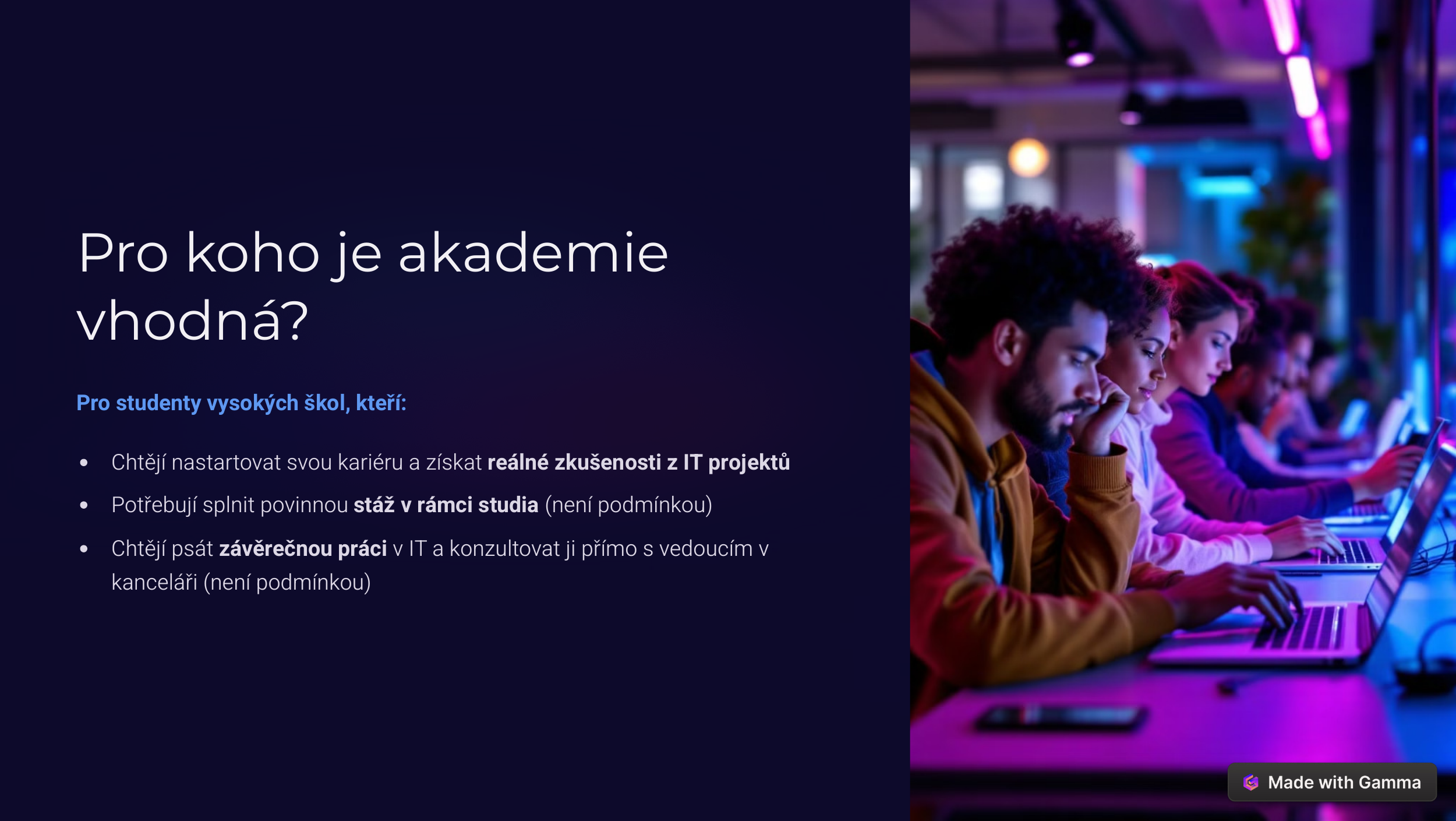 Easily adjust your working hours around your school schedule. Remote work is possible, though training and team activities are mostly in person at our Brno office.